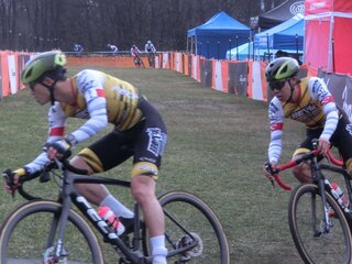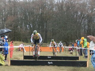 男子エリート1の途中で天候は激変。雨を吸った土の路面が突然つるつるにグリップを失い、多くの選手が「さっきの周回と違う」畑で自転車を滑らせた。これは予想されていた雨で、マッドタイヤを準備していた選手はピットで対応したが、大混乱のピットワーク