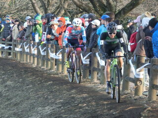U23年代ながら、今季エリートに勝っている副島選手はエリートに場所を移した。織田選手、副島選手、沢田選手の3人で、交互に仕掛けながら試合は展開した。少し遅れて横山選手、そして竹ノ内選手、鈴木来人のふたり。![]()